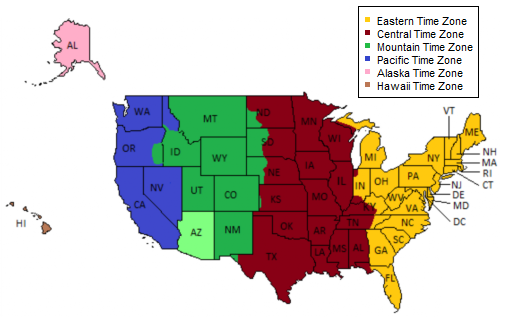 Central Time Zone, Mountain Time Zone, Pacific Time Zone,